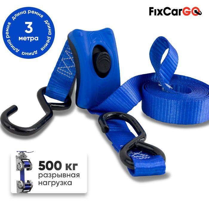 Самозатягивающийся ремень крепления груза 25 мм, 3 м, в комплекте с чехлом
